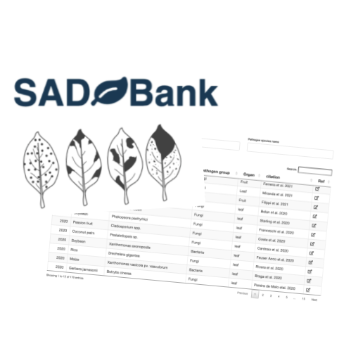 SADBAnk is a curated collection of studies on Standard Area Diagram set (SADs), pictorial representations of disease symptoms and/or signs in a plant organ where each diagram depicts a percent diseased area. They are designed in a wide range of styles and are used as tools to use during or prior to visual assessments of disease severity to “calibrate” a rater’s eye and improve accuracy, precision and reliability of the estimates.