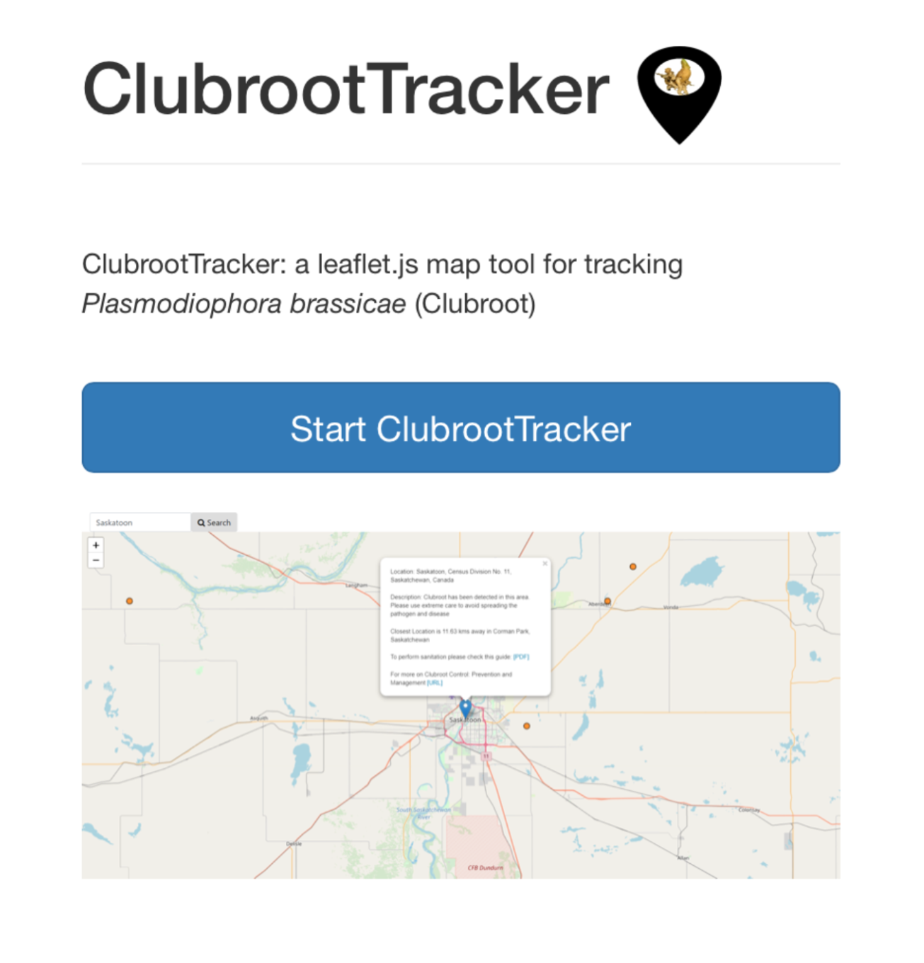 Clubroot is a devastating disease caused by the soil-borne protist *Plasmodiophora brassicae* putting at risk Brassicas worldwide. An open database to record the presence of clubroot and *Plasmodiophora brassicae* reported by researchers, industry and growers.